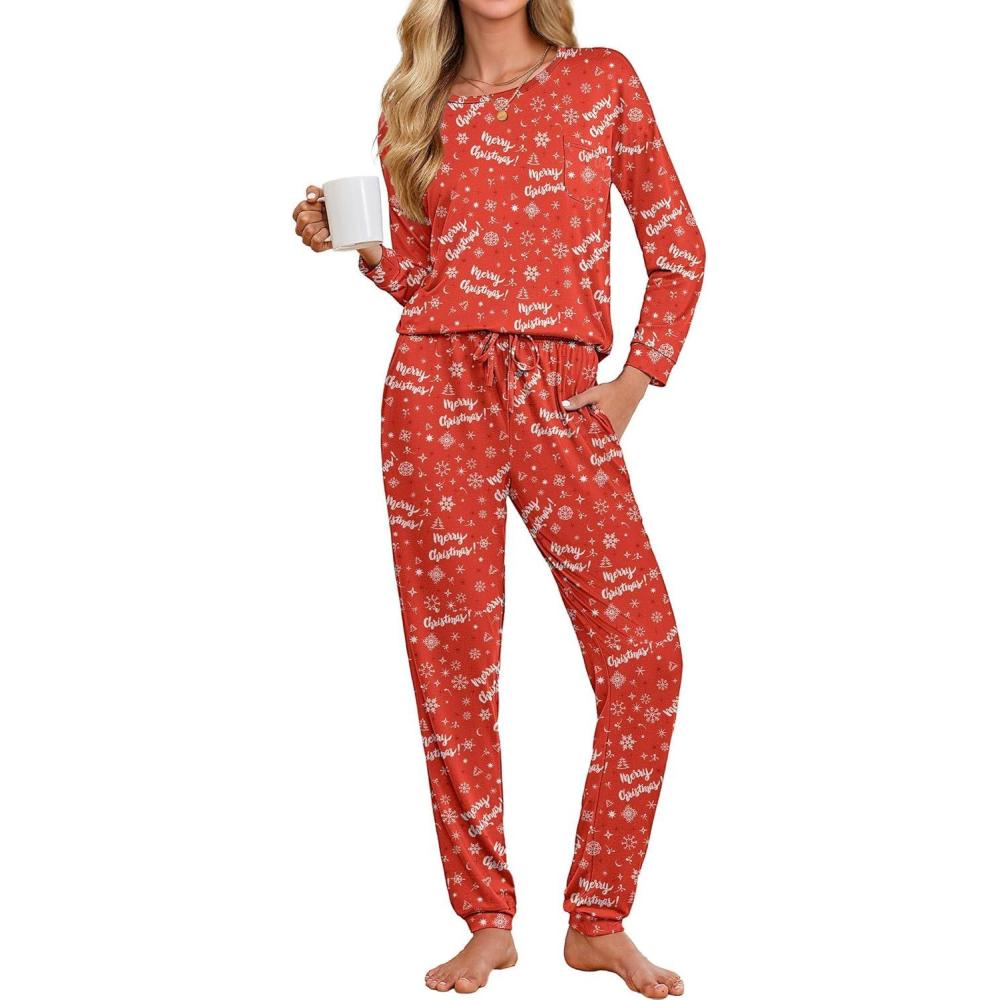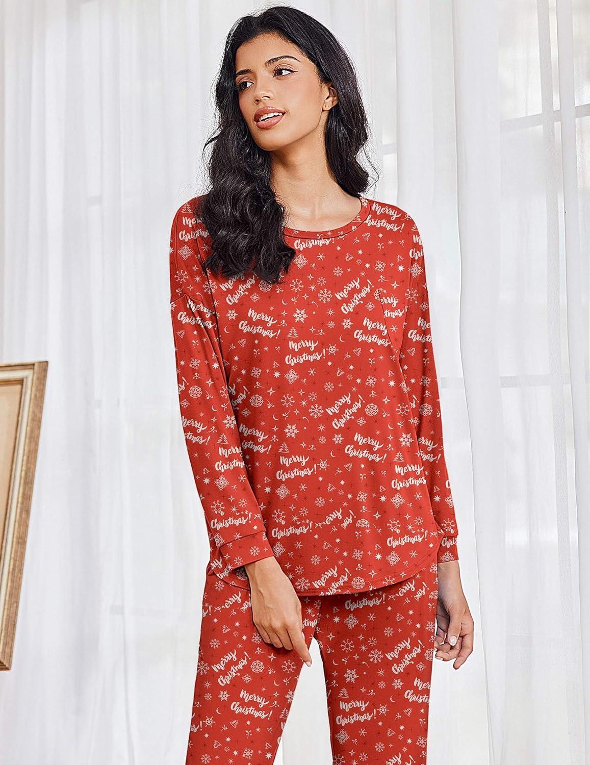 Ekouaer Womens Pajamas Set Long Sleeve Christmas PJ Sets Soft Lounge Set for Women Sleepwear Joggers with Pockets(Red Christmas)