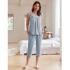 imageEkouaer Womens Pajamas Set Pleated Square Neck Sleeveless Tops and Capri Pants Lounge Sets 2 Piece Summer OutfitsBlue