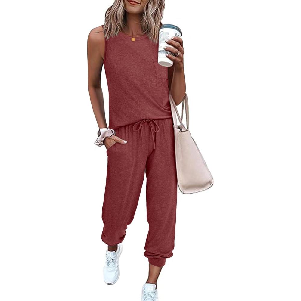 Get up to 60% off on Ekouaer Women’s Pajamas Set Soft 2 Piece Lounge Sets Sleeveless Tank Tops with Jogger Set Active Tracksuit Lounge Wear(Wine Red) styles during our winter sale event.