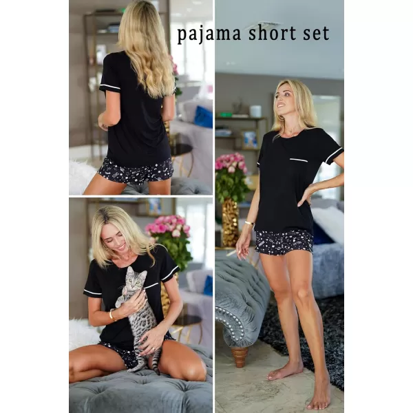 Ekouaer Women's Pajamas Sets Shorts 2 Piece Short Sleeve Lounge Sets Sleepwear Casual Pjs with Pockets(Black Star)