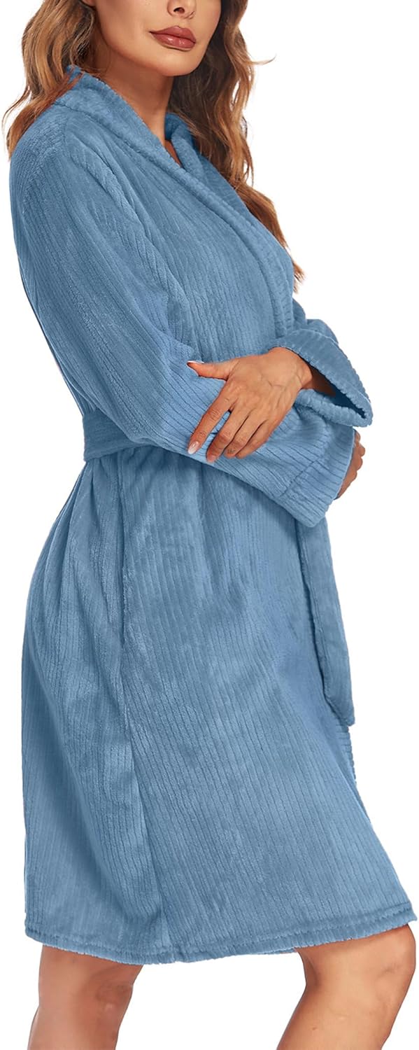 Get up to 50% off on Ekouaer Womens Plush Robes Soft Bathrobe Knee Length Warm Soft Robe Fleece Loungewear with Pockets S-XXL(Blue) styles during our spring sale event.