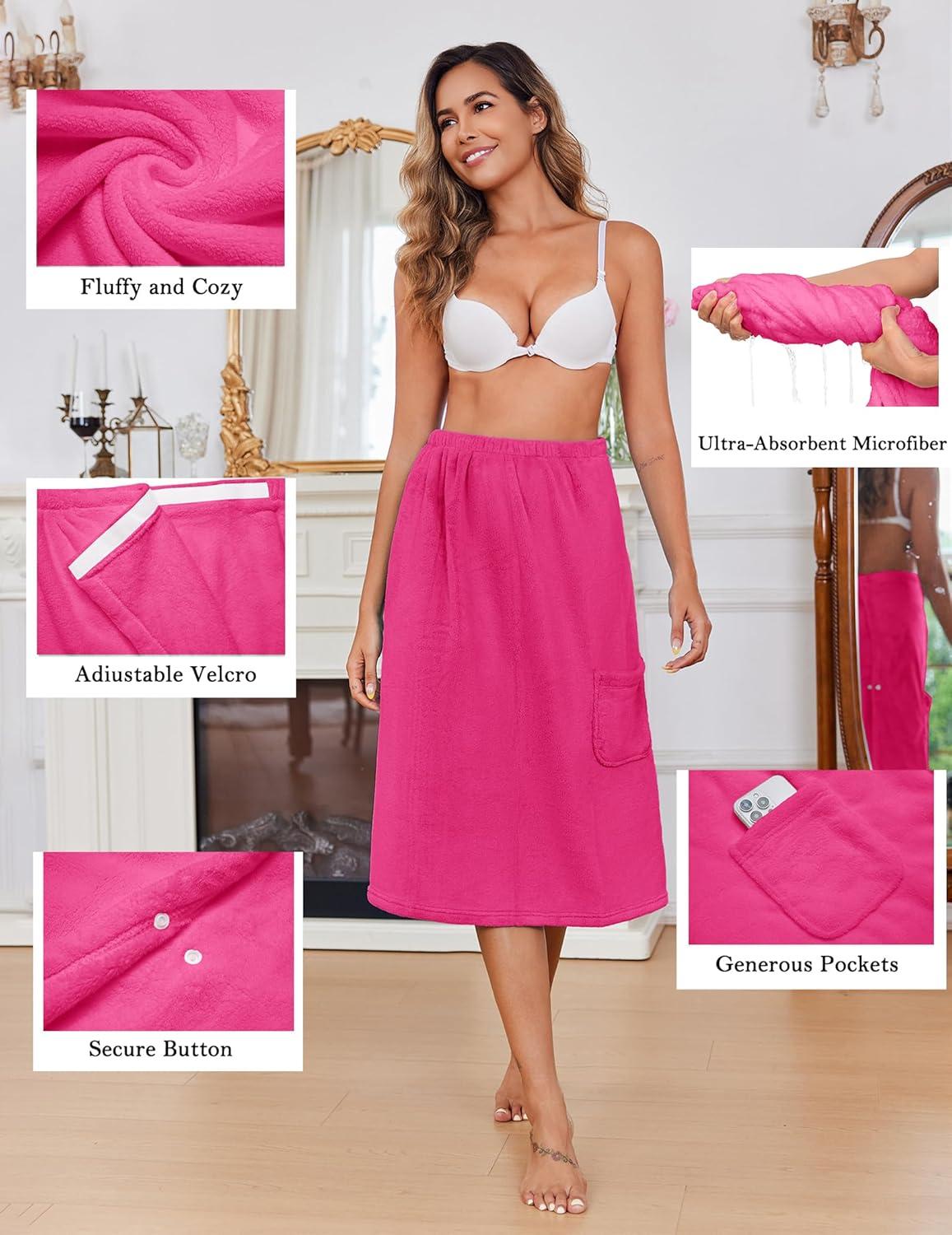Ekouaer Women's Plush Towel Wrap Soft Lightweight Shower Wrap Absorbent Spa Body Wrap Bath Robe with Velcro S-L(Hot Pink)