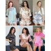 imageEkouaer Womens Satin Pajamas Cute Ruffle Sleeve Printed Sleepwear Button Down Silk Pjs SetBlue Gray Stripes