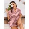 imageEkouaer Womens Satin Pajamas Set Button Down Silk 2 Piece Pj Sets Ruffle Short Sleeve SleepwearFuchsia