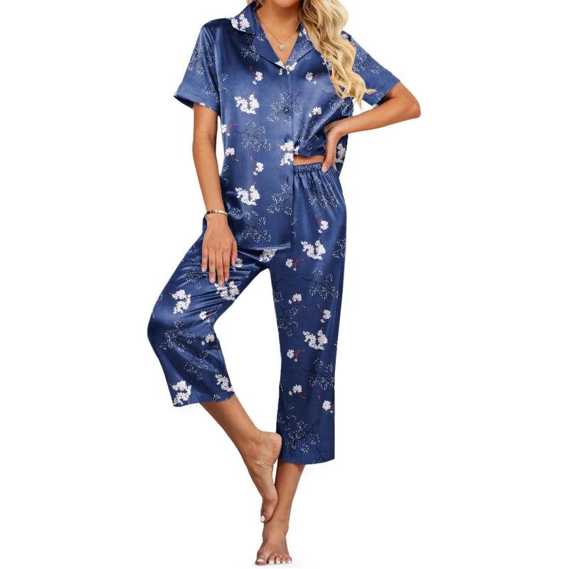 Our holiday sale features the best deals on Ekouaer Womens Satin Pajamas Silk Capri Pjs 2 Piece Lounge Sets Short Sleeve Button Down Sleepwear(Blue-white Flower) and accessories. Shop now and save!