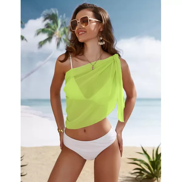 Ekouaer Womens Short Sarongs Beach Wrap Sheer Bikini Wraps Chiffon Cover Ups for Swimwear S3XLChiffonASolid color Fluorescent Green