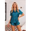 imageEkouaer Womens Silk Pajamas Set Button Down 2 Piece Satin Pjs Shorts Set Ruffle Notch Collar SleepwearDark Green