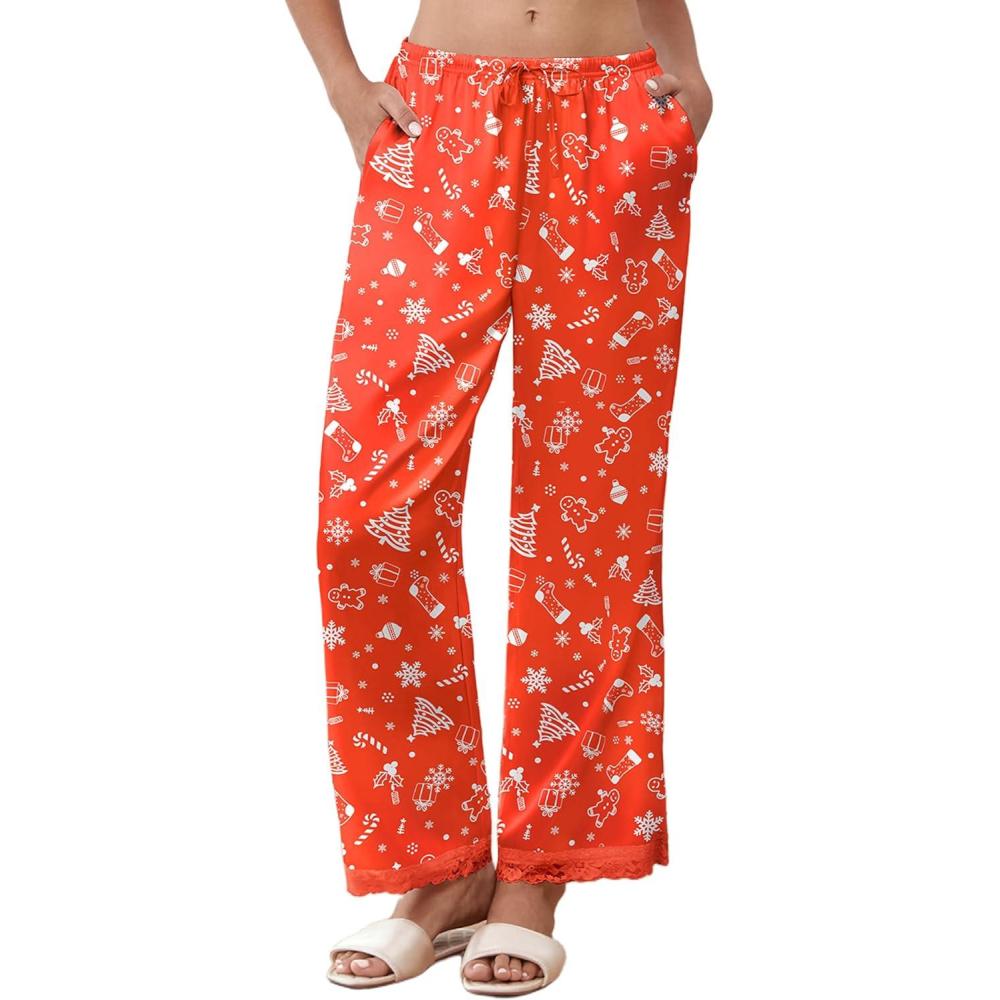 Don’t wait, get up to 50% off on Ekouaer Womens Silk Satin Pajama Pants Casual Comfy Sleep Pants Pocketed Elastic Waist Wide Leg Pj Bottoms with Lace Trim(Red Chirstmas Pattern) during our end-of-season sale event.