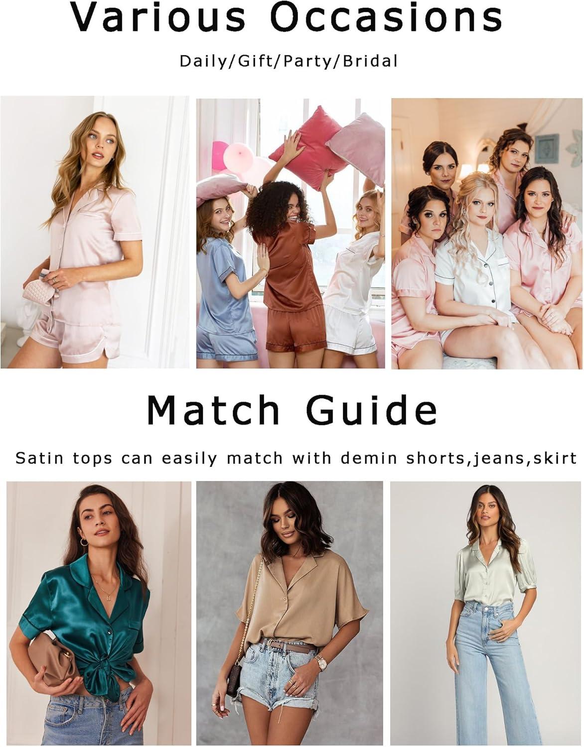 imageEkouaer Womens Silk Satin Pajamas Set Short Sleeve Sleepwear Button Down Loungewear 2 Piece Pjs Shorts Set S5X Plus SizeDark Peacock Blue