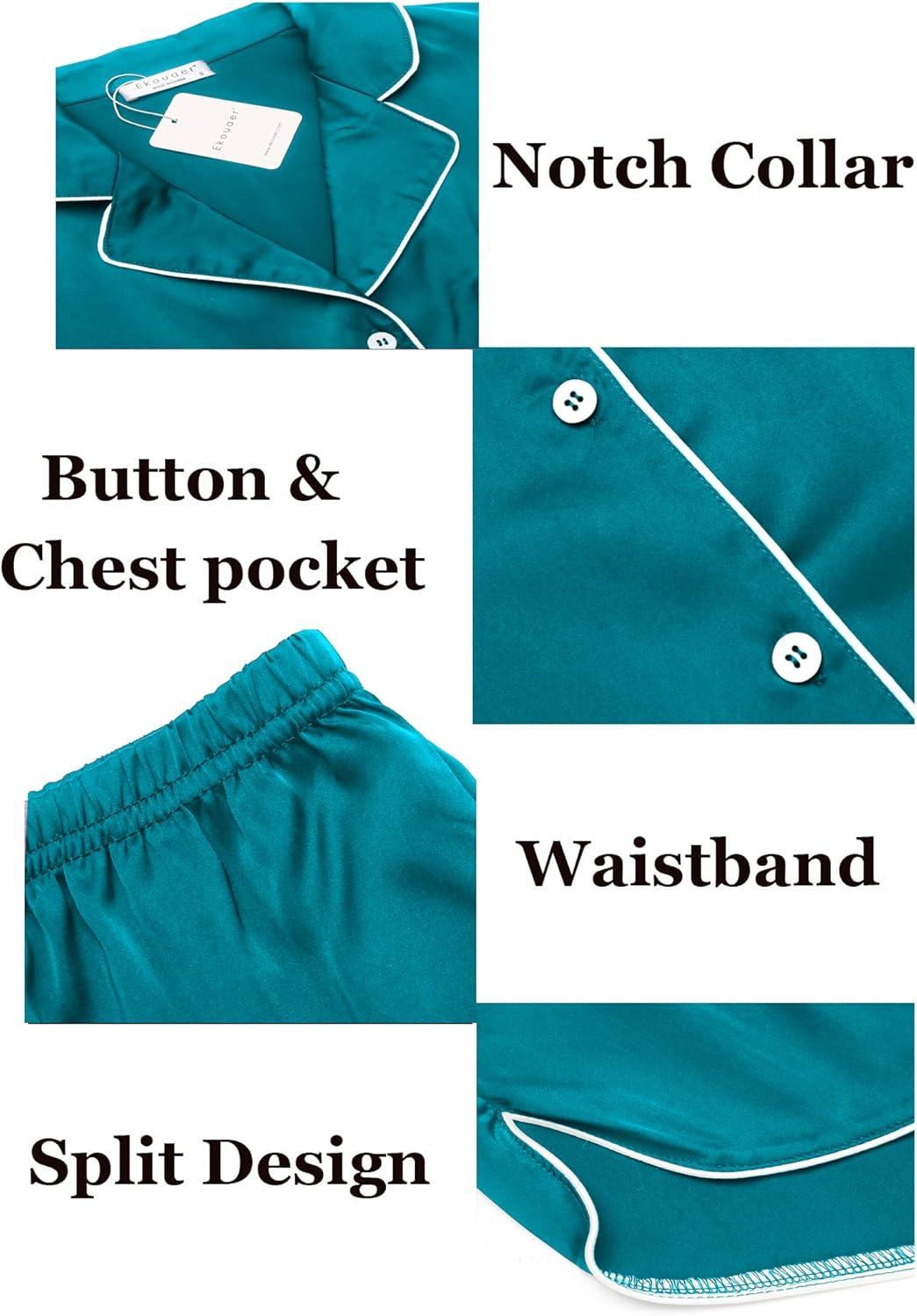 Ekouaer Womens Silk Satin Pajamas Set Short Sleeve Sleepwear Button Down Loungewear 2 Piece Pjs Shorts Set S-5X Plus Size(Dark Peacock Blue)