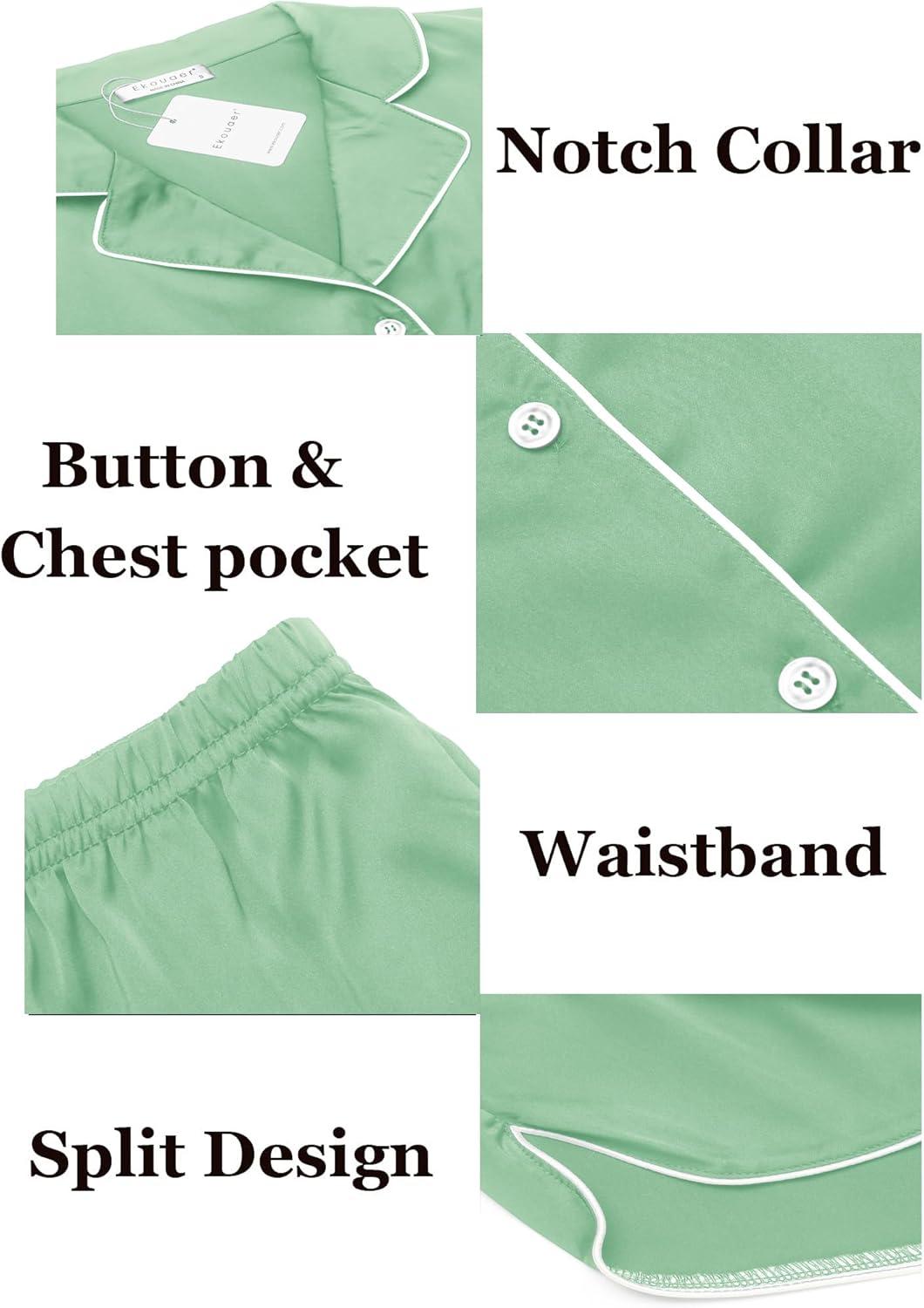 Ekouaer Womens Silk Satin Pajamas Set Short Sleeve Sleepwear Button Down Loungewear 2 Piece Pjs Shorts Set S-5X Plus Size(Grey Green)