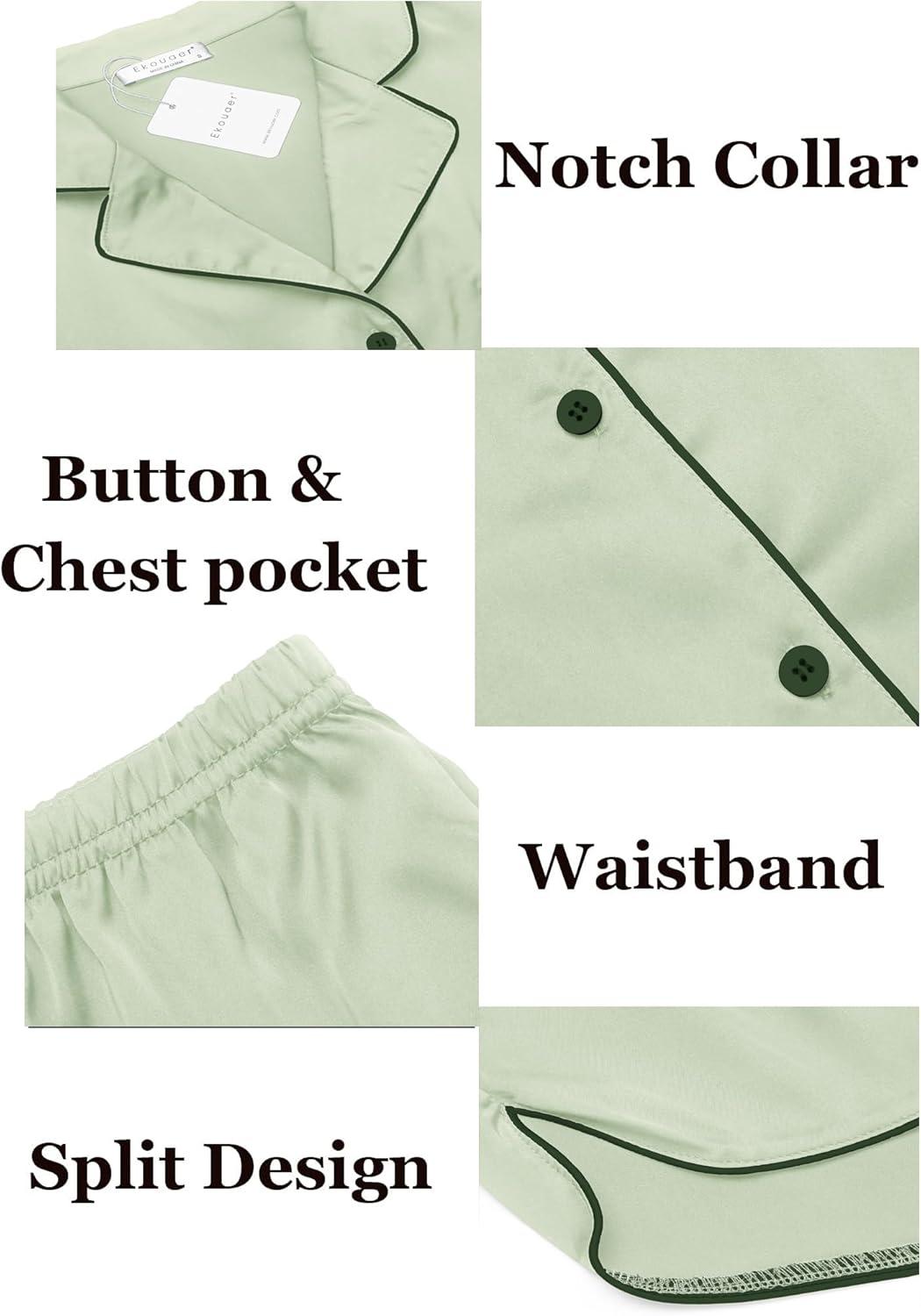 Ekouaer Womens Silk Satin Pajamas Set Short Sleeve Sleepwear Button Down Loungewear 2 Piece Pjs Shorts Set S-5X Plus Size(Light Green)