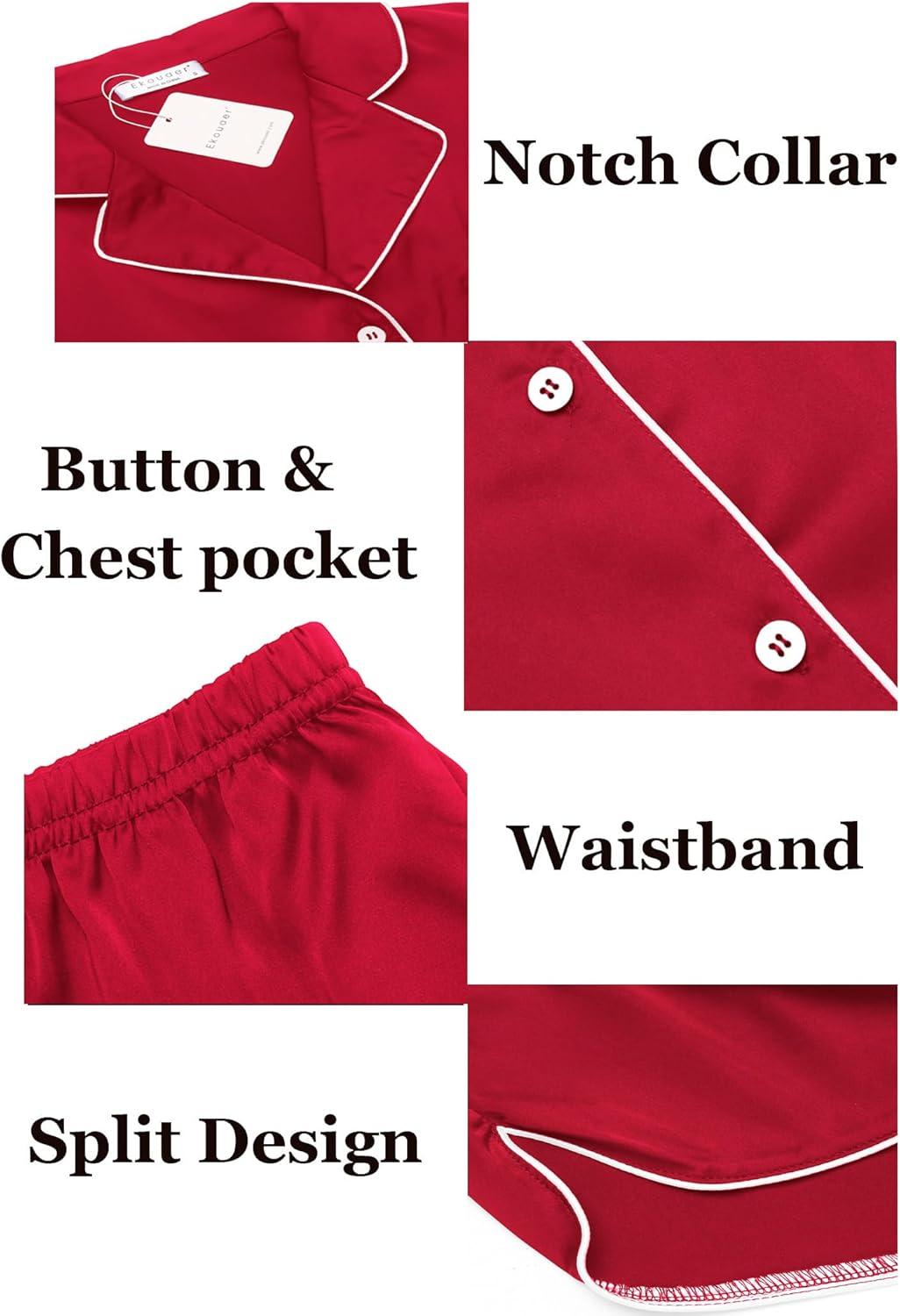 Ekouaer Womens Silk Satin Pajamas Set Short Sleeve Sleepwear Button Down Loungewear 2 Piece Pjs Shorts Set S-5X Plus Size(Red)