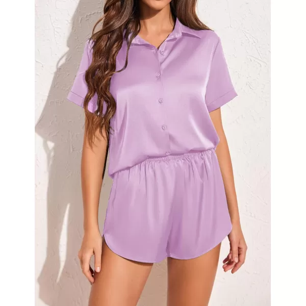 Ekouaer Womens Silk Short Sleeve ButtonDown Pajama SetsLavender