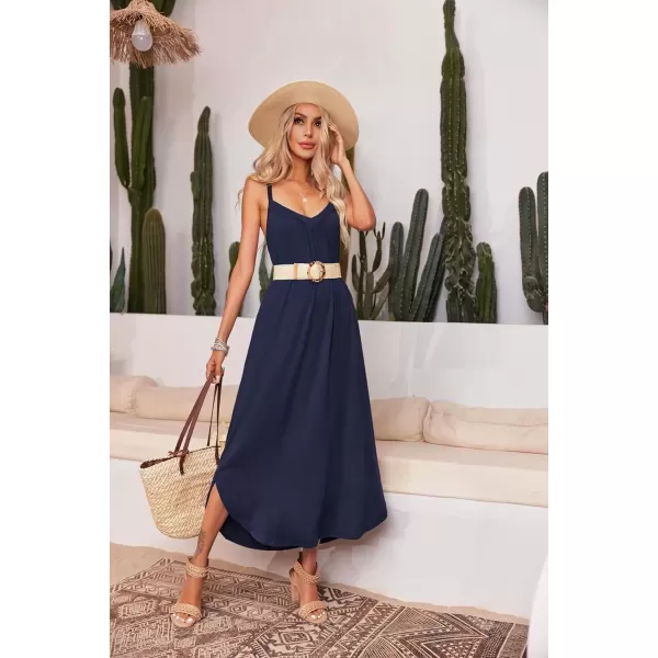 Ekouaer Womens Sleeveless Nightgown Full Slip Nightshirt Print Nightwear Full Length Loungewear Soft Nightdress(Navy Blue)