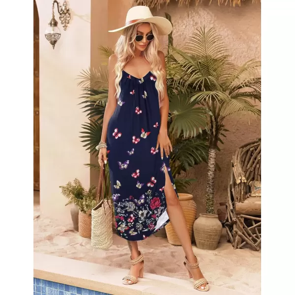 Ekouaer Womens Sleeveless Nightgown Full Slip Nightshirt Print Nightwear Full Length Loungewear Soft Nightdress(Navy Butterfly)
