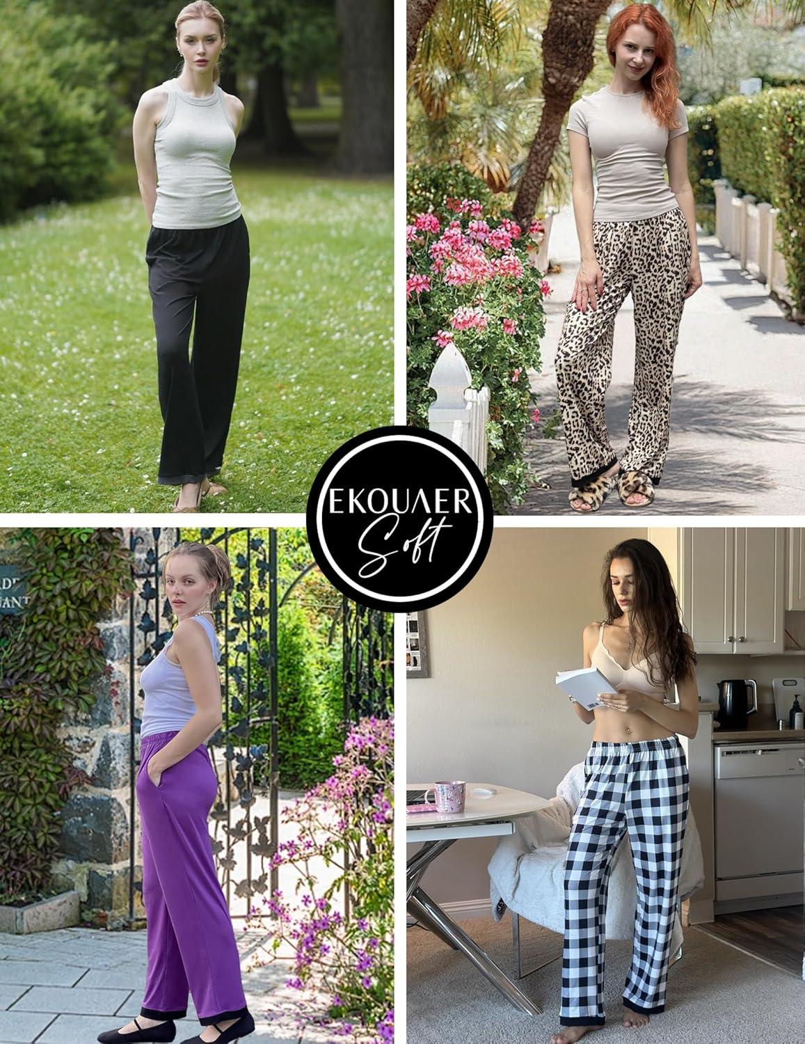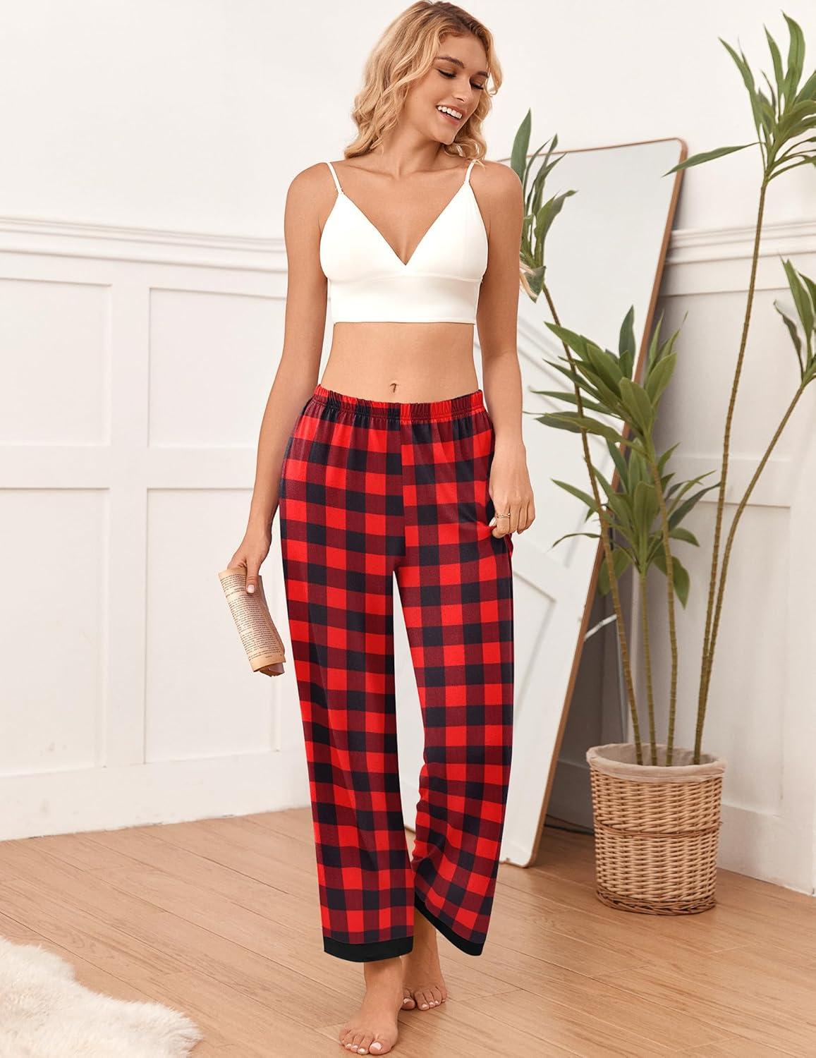 Ekouaer Womens Soft Pajama Pants Casual Lounge Sleep Pants Stretch Pajama Bottoms Color Block Hem Pj Pants with Pockets(Red Black Plaid)