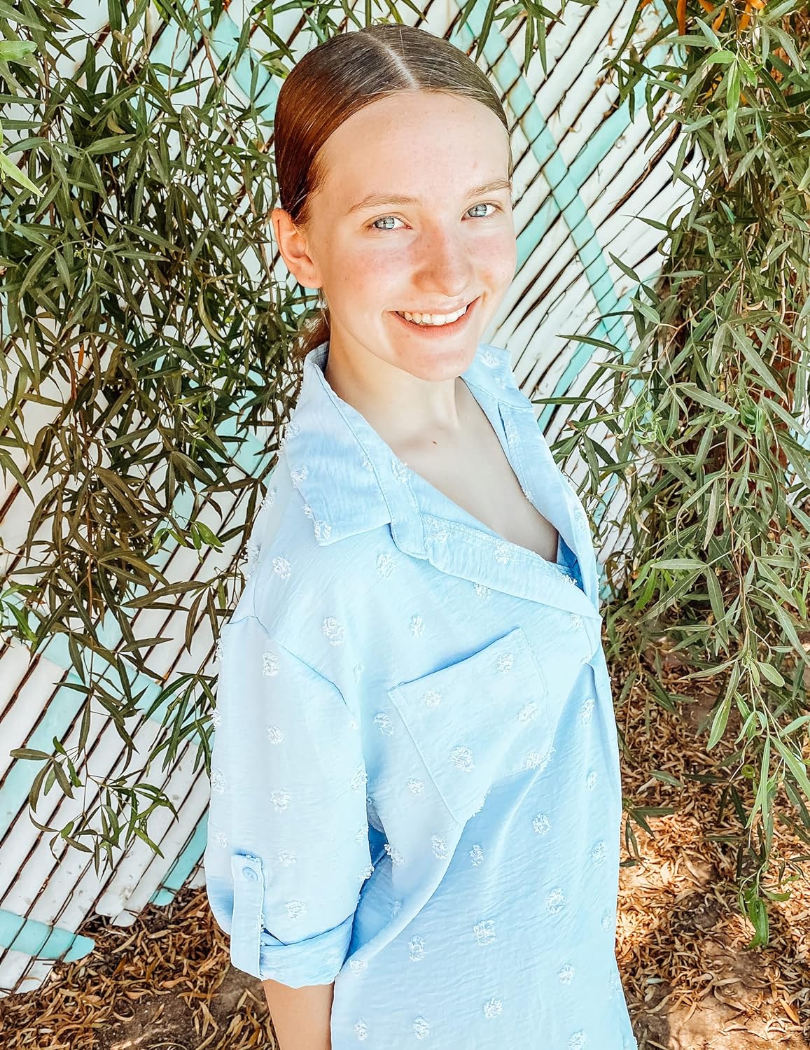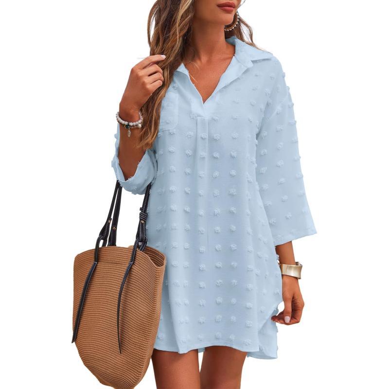Ekouaer Womens Swimsuit Beach Cover Ups Shirt Chiffon Bikini Bathing Suit Swiss Dot Beach Shirt SXXXLClear Blue