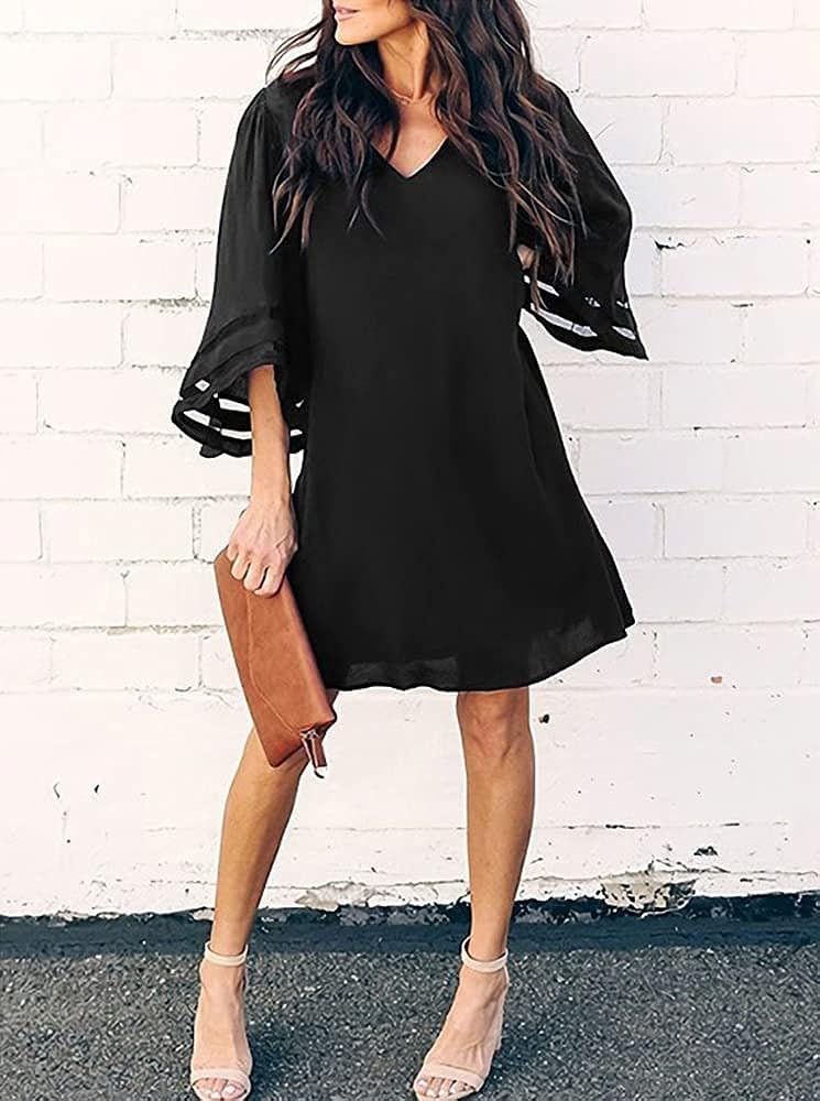 Ekouaer Women's Swimsuit Cover Up 3/4 Bell Sleeve Beachwear Coverups Deep V-Neck Bikini Beach Dress S-3XL(Black)