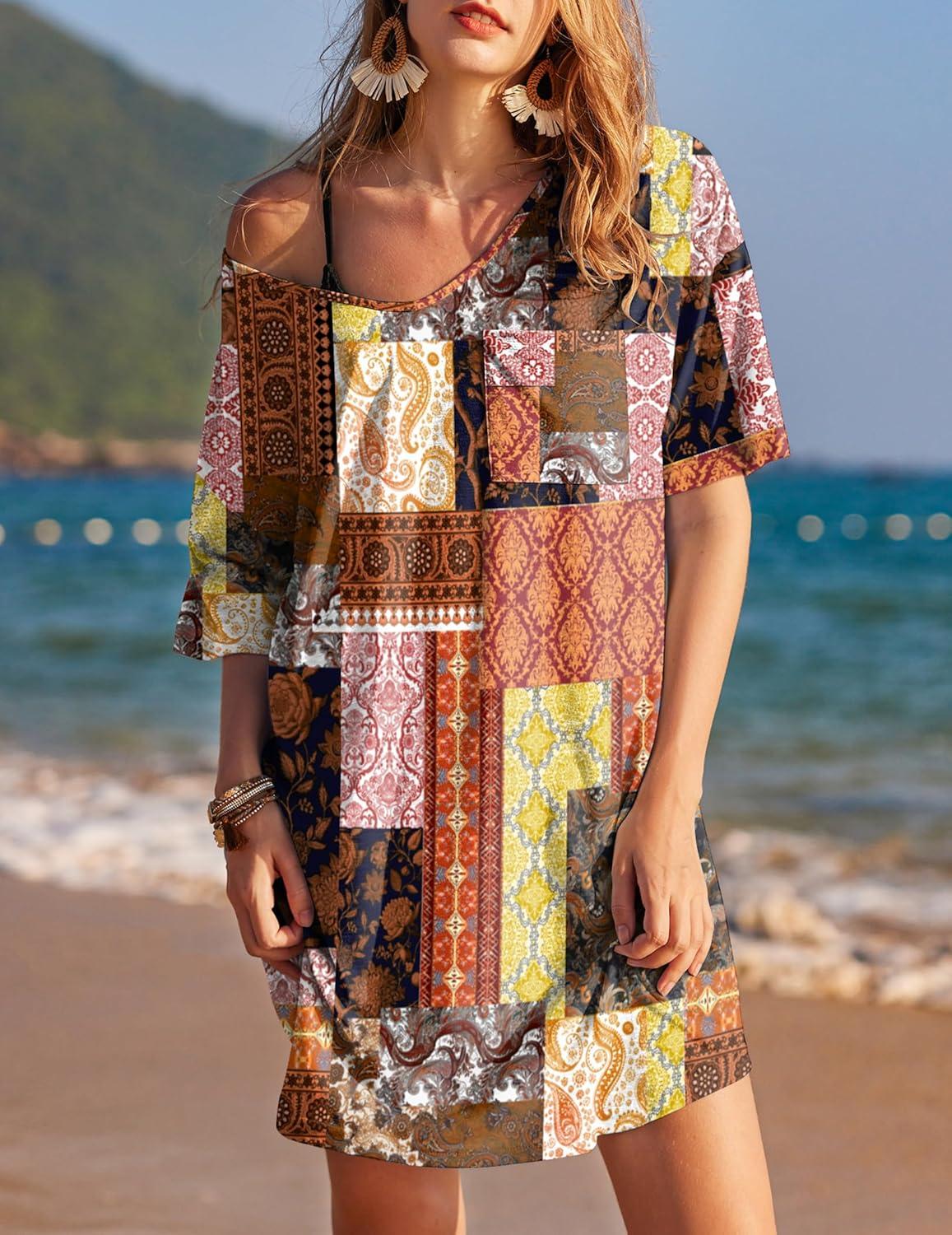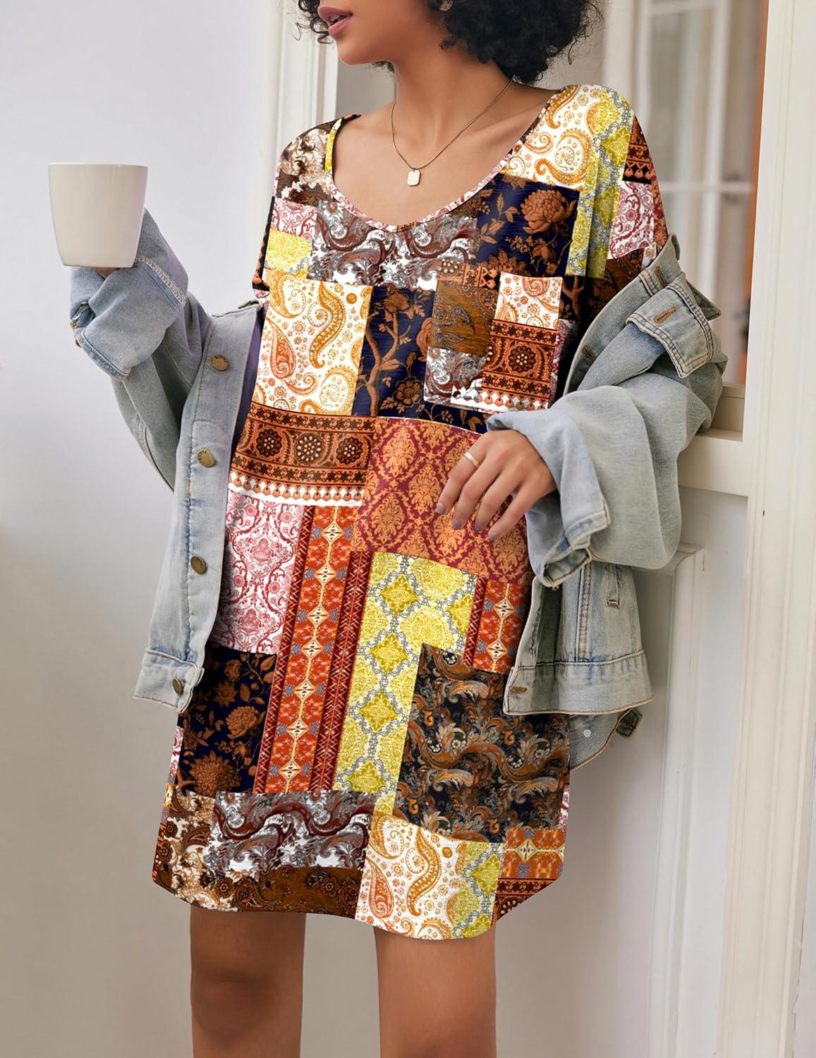 Ekouaer Womens Tshirt Nightgown Cotton V Neck Sleepshirts Comfy Casual Nightshirt for Women(Multicolor)