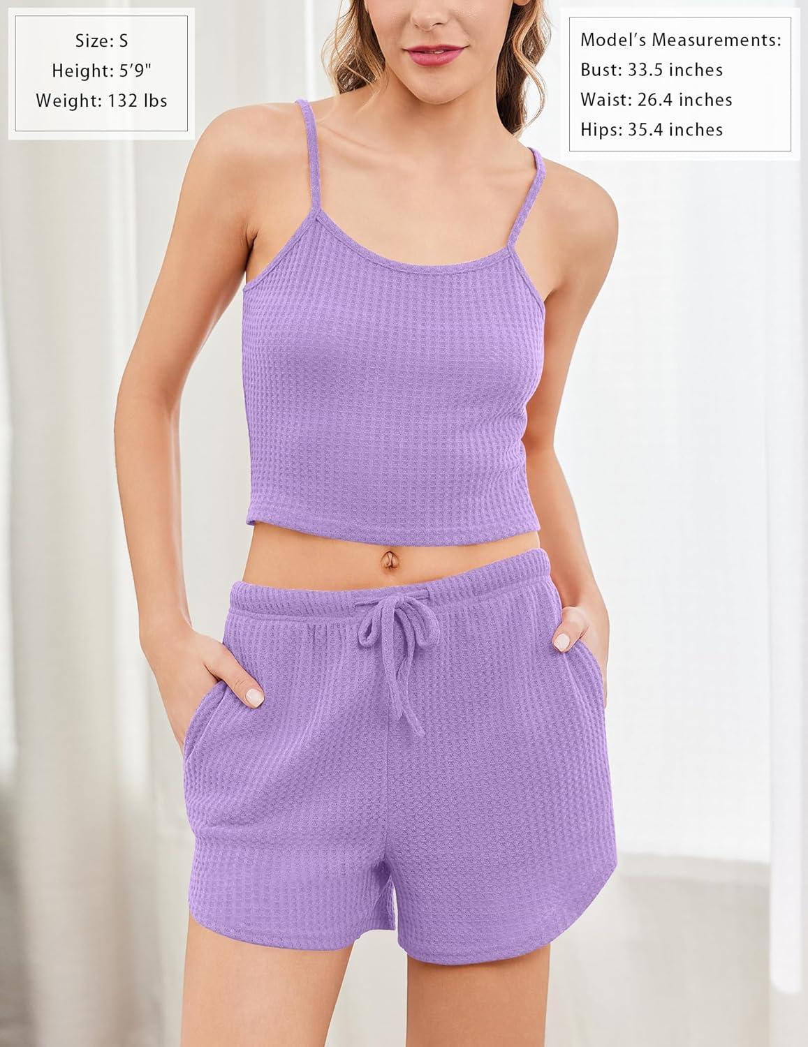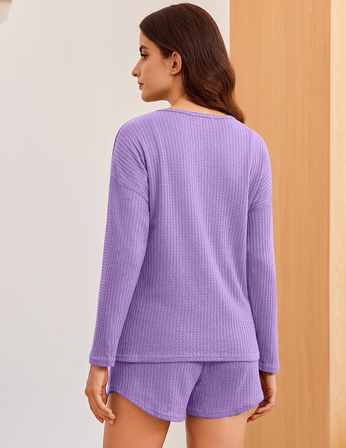 Be the first to review “Ekouaer Womens Waffle Knit Pajama Sets 3 Piece Long Sleeve and Cami Top with Shorts Outfits Lounge Set(Light Purple)”