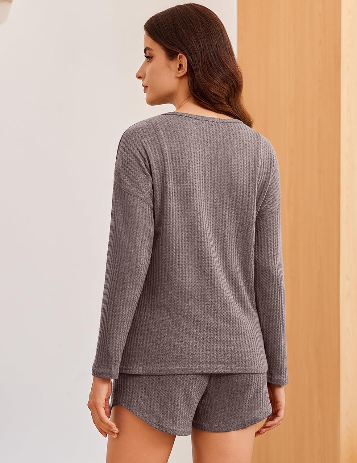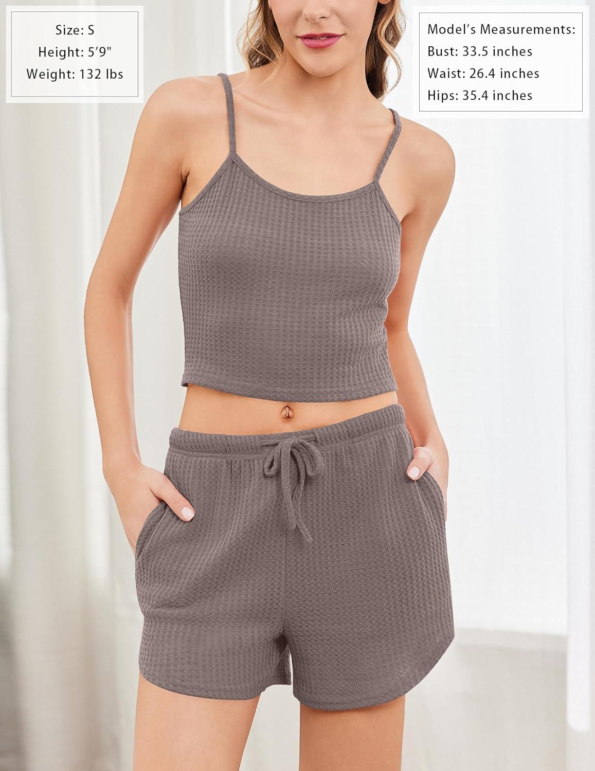 Be the first to review “Ekouaer Womens Waffle Knit Pajama Sets 3 Piece Long Sleeve and Cami Top with Shorts Outfits Lounge Set(Taupe Gray)”