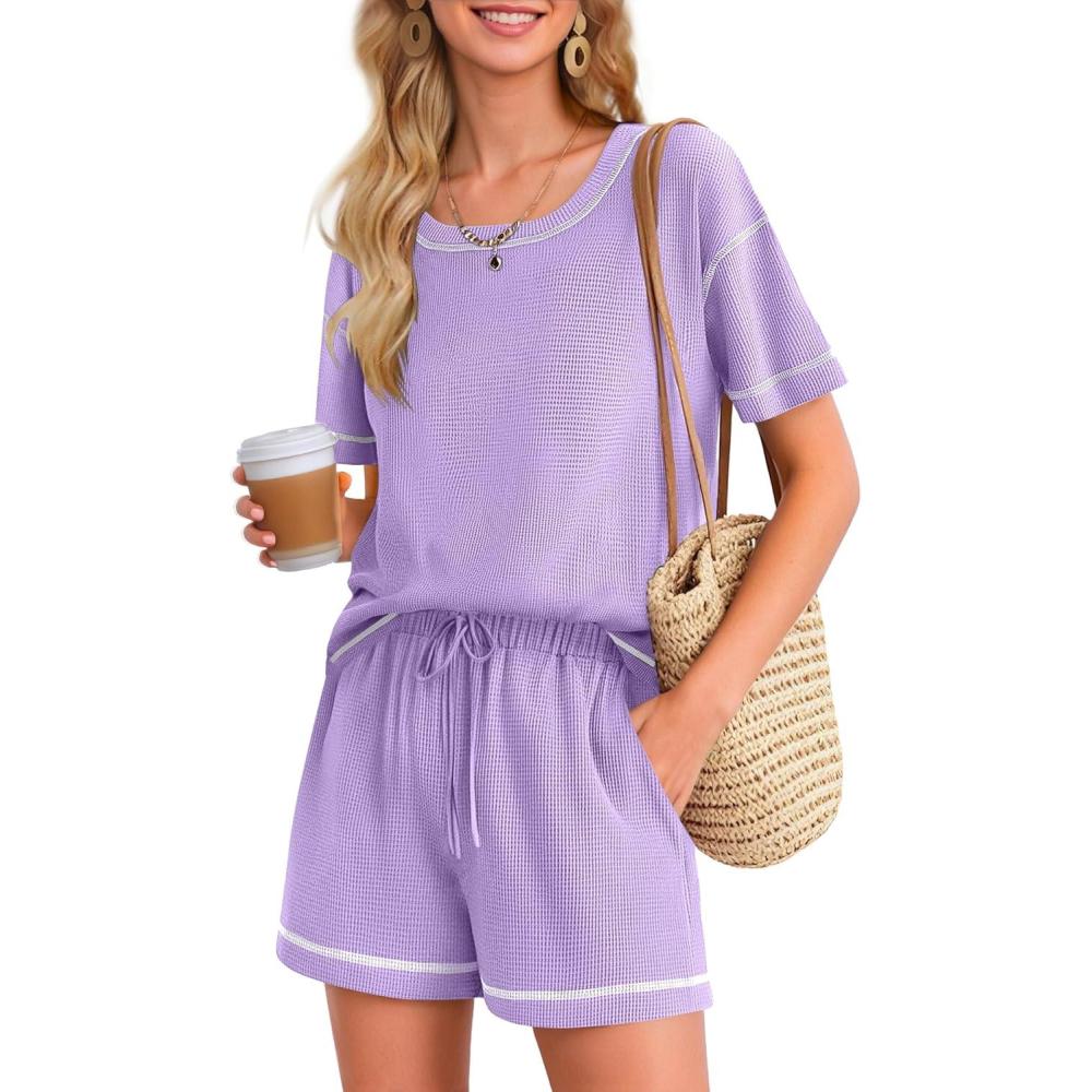 Don’t break the bank! Get the Ekouaer Women’s Waffle Knit Two Piece Lounge Set, Soft Matching Outfits for Daily Wear, Casual Shorts Set with Pocket(Lilac) you want at a price you can afford during our markdown sale.