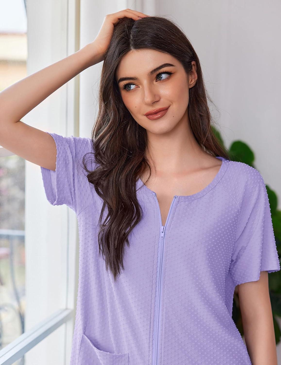 Be the first to review “Ekouaer Women’s Zipper Robe Short Sleeves Swiss Dots Housecoat Zip Up Bathrobe Soft Nightgown with Pockets S-3XL(Lavender)” Cancel reply