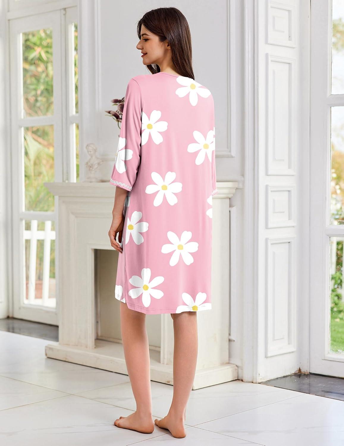 imageEkouaer Zipper Robes for Women 34 Sleeves Lightweight House Coat Zip Up Bathrobe Soft Nightgown with Pockets S3XLPink Floral