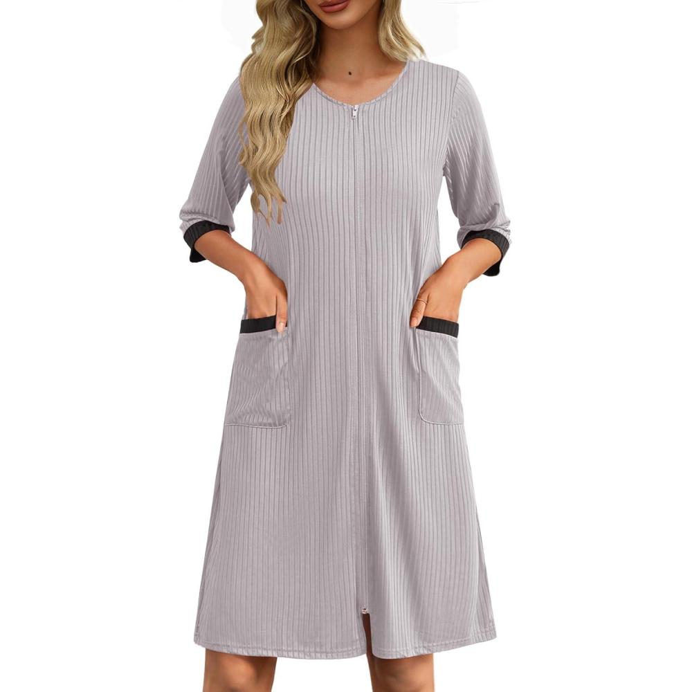 Ekouaer Zipper Robes for Women Waffle Knit Bathrobes Short Lightweight Knee Length Loungewear with Pockets S-XXL(Light Gray)