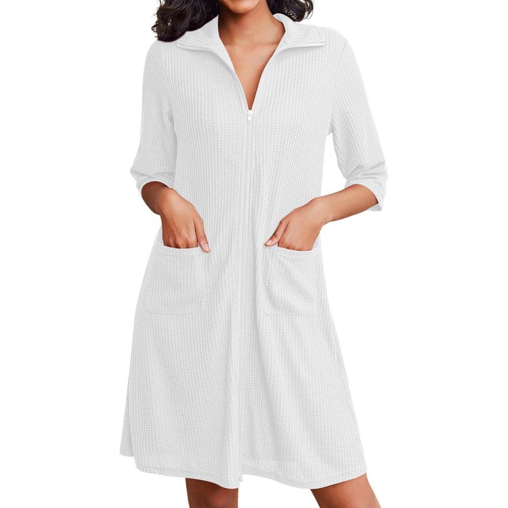imageEkouaer Zipper Robes for Women Waffle Knit Bathrobes Short Lightweight Knee Length Loungewear with Pockets SXXLWhite